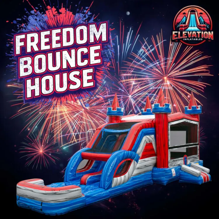 Bring explosive fun to your next celebration with the Freedom Bounce House with Slide (Water or Dry) from Elevation Inflatables. This versatile inflatable combines a spacious bounce area with an exciting slide that can be enjoyed wet during warm weather or dry any time of year, making it perfect for backyard birthday parties, school events, church gatherings, and summer celebrations. Designed for safe, active entertainment, the Freedom Bounce House is professionally cleaned, thoroughly inspected, and set up by our team so you can focus on hosting. Browse the Freedom unit below, pick your date, and reserve this crowd-favorite inflatable for your event today!