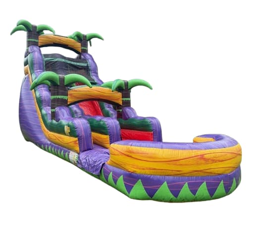 Bring the spirit of the islands to your backyard with the Jamaican Plunge Water Slide — a vibrant 18-foot inflatable water slide rental perfect for hot North Carolina summers! With bold green, yellow, and purple colors, this tropical slide delivers non-stop fun and a splashy finish. It's ideal for birthday parties, summer celebrations, school events, and more across Jacksonville, NC and nearby areas like Richlands, Sneads Ferry, and Swansboro.